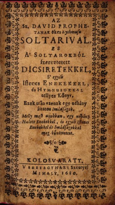 | Cím | A szent Dávid prófétának ékes ritmusú zsoltárival és a zsoltárokból szereztetett dicséretekkel, s egyéb istenes énekekkel és himnuszokkal teljes könyv. |