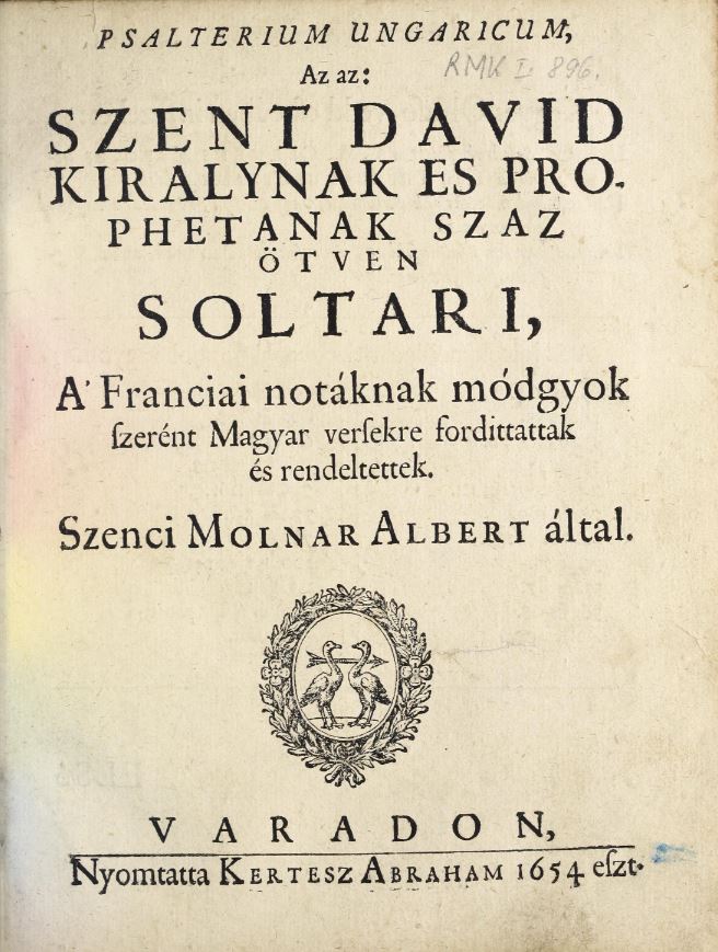 | Cím | A szent Dávid prófétának ékes ritmusú zsoltárival, és a zsoltárokból szerzett dicséretekkel, s egyéb énekekkel és himnuszokkal teljes könyv |