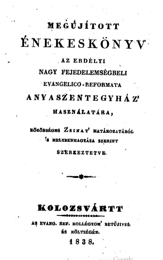 | Cím | Megújított énekeskönyv az Erdélyi Nagyfejedelemségbéli evangélico-reformata anyaszentegyház, különösen pedig iskolák használatára |