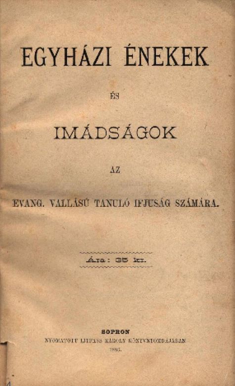 | Cím | Egyházi énekek és imádságok az evang. vallású tanuló ifjúság számára |
