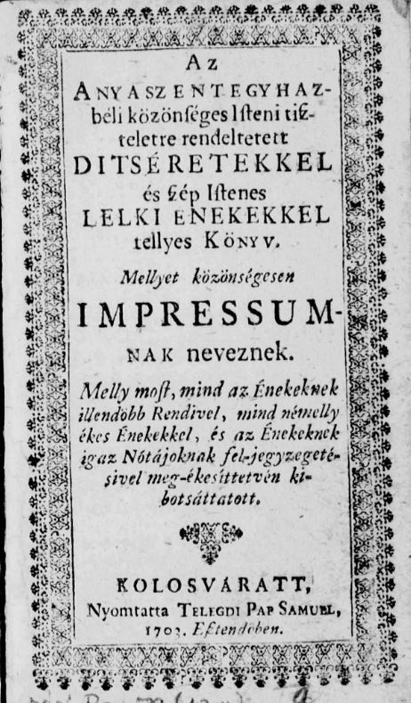 | Nyomda | Az Unitária Ecclésia Typusival |
