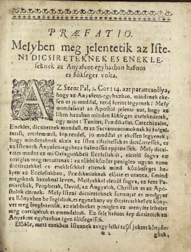 | Cím | Keresztyéni énekek, melyek a graduál mellett, s anélkül is, ahol azzal nem élhetnek, a magyar nemzetben reformáltatott ekklézsiákban szoktanak mondattatni. |
