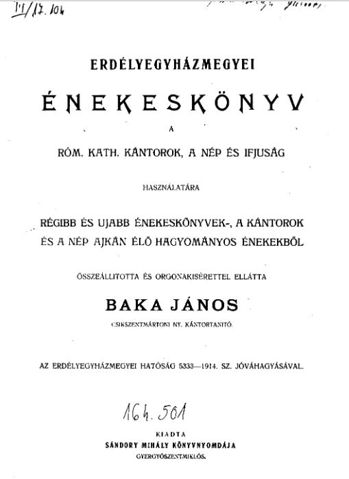 Baka János: Erdélyegyházmegyei énekeskönyv
