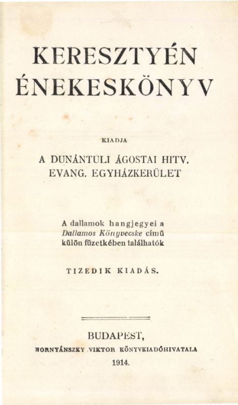 | Cím | Keresztyén énekeskönyv, melyet magános áhítatosságra szolgáló néhány imádsággal együtt szerzett és kiadott a Nagy-Győri Ágostai Hitvallást követő Evangélikus Gyülekezet |