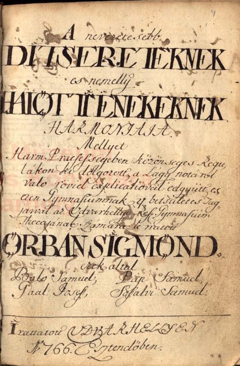 Orbán Zsigmond: A nevezetesebb dicséreteknek és némely halotti énekeknek harmóniája